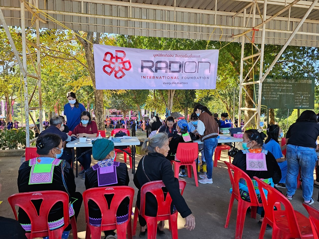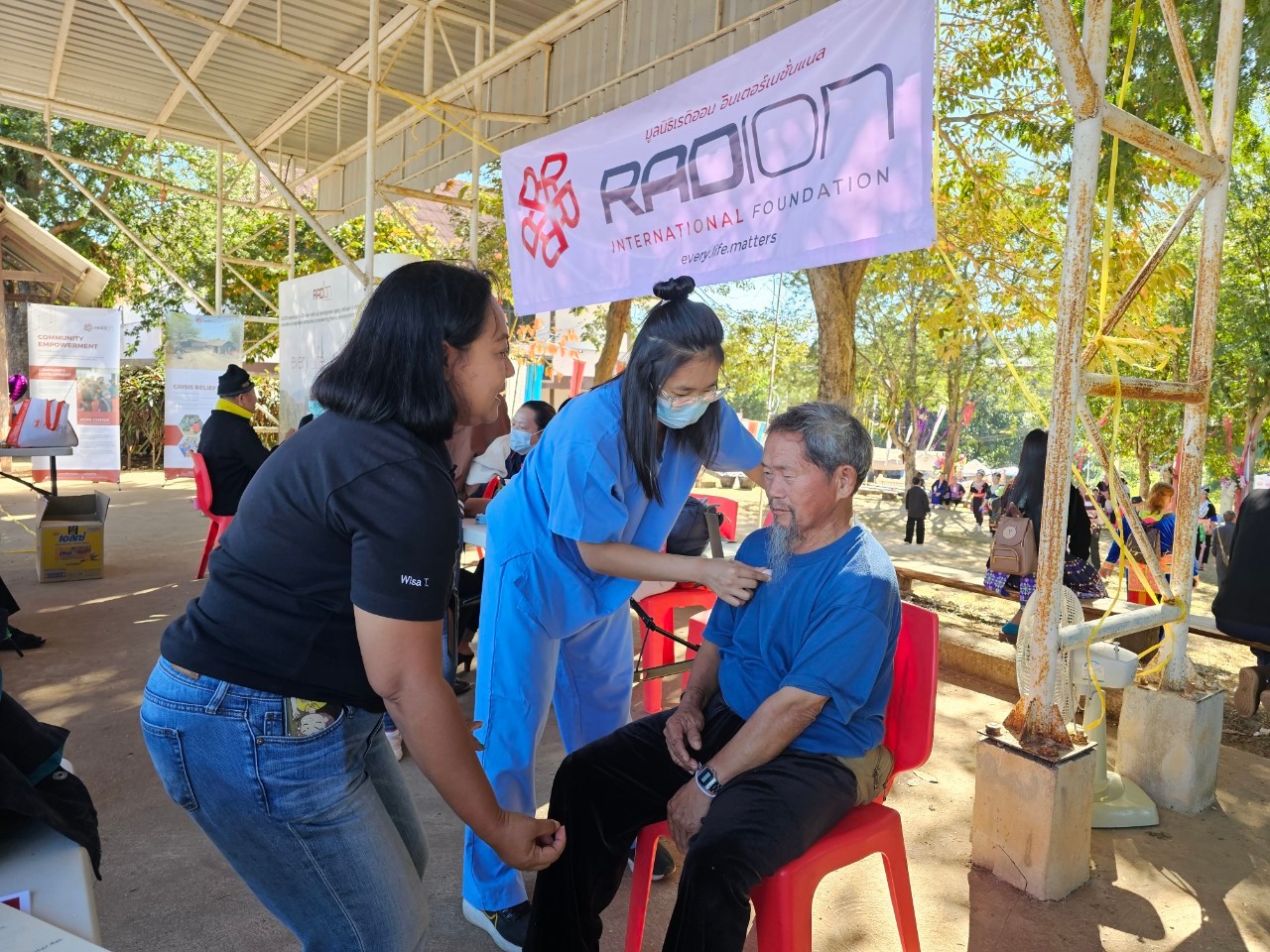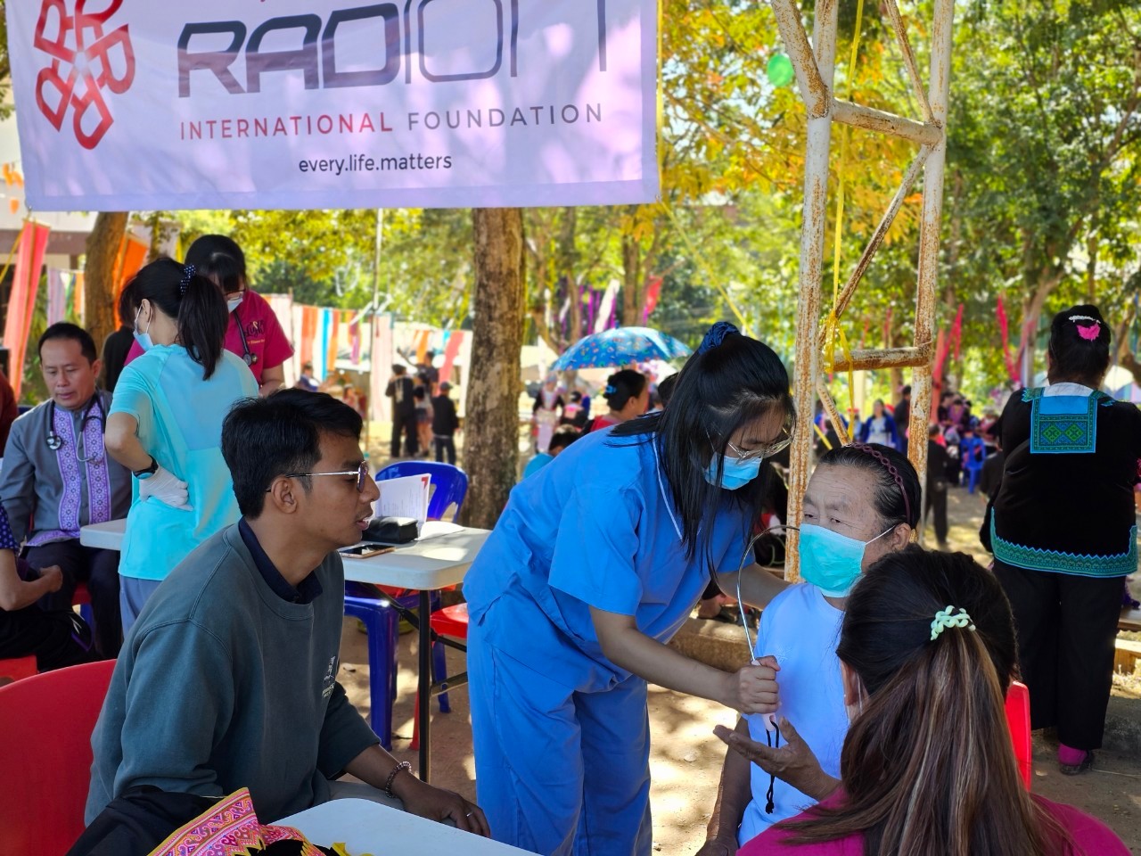 มูลนิธิเรดิออนฯ ร่วมกับทีม Project Light ทีมแพทย์อาสาจากประเทศสิงคโปร์ เปิดให้บริการตรวจสุขภาพฟรี และบูธกิจกรรมให้ความรู้เกี่ยวกับสุขภาพ ในงานปีใหม่ม้งของตำบลเข็กน้อย อำเภอเขาค้อ จังหวัดเพชรบูรณ์ ในระหว่างวันที่ 19-20 ธันวาคม 2566 โดยเปิดให้คนในชุมชน รวมถึงผู้ร่วมงานได้เข้ามารับบริการตรวจสุขภาพเบื้องต้นฟรี รวมถึงการทำกายภาพบำบัดขั้นพื้นฐานเพื่อยืดเส้นยืดสายลดอาการปวดกล้ามเนื้อตามบริเวณต่างๆ ของร่างกาย โดยได้รับความสนใจากผู้สูงอายุในชุมชนเป็นอย่างมาก นอกจากนี้เรายังมีบูธกิจกรรมร่วมสนุกตอบคำถามเกี่ยวกับความรู้เรื่องของสุขภาพ ให้กับเด็กๆ และผู้ร่วมงานได้เข้ามาร่วมสนุก ลุ้นรับของรางวัล และที่สำคัญได้รับความรู้เกี่ยวกับการดูแลสุขภาพ ความรู้รอบตัวต่างๆ ที่เกี่ยวกับสุขภาพร่างกายของเรา