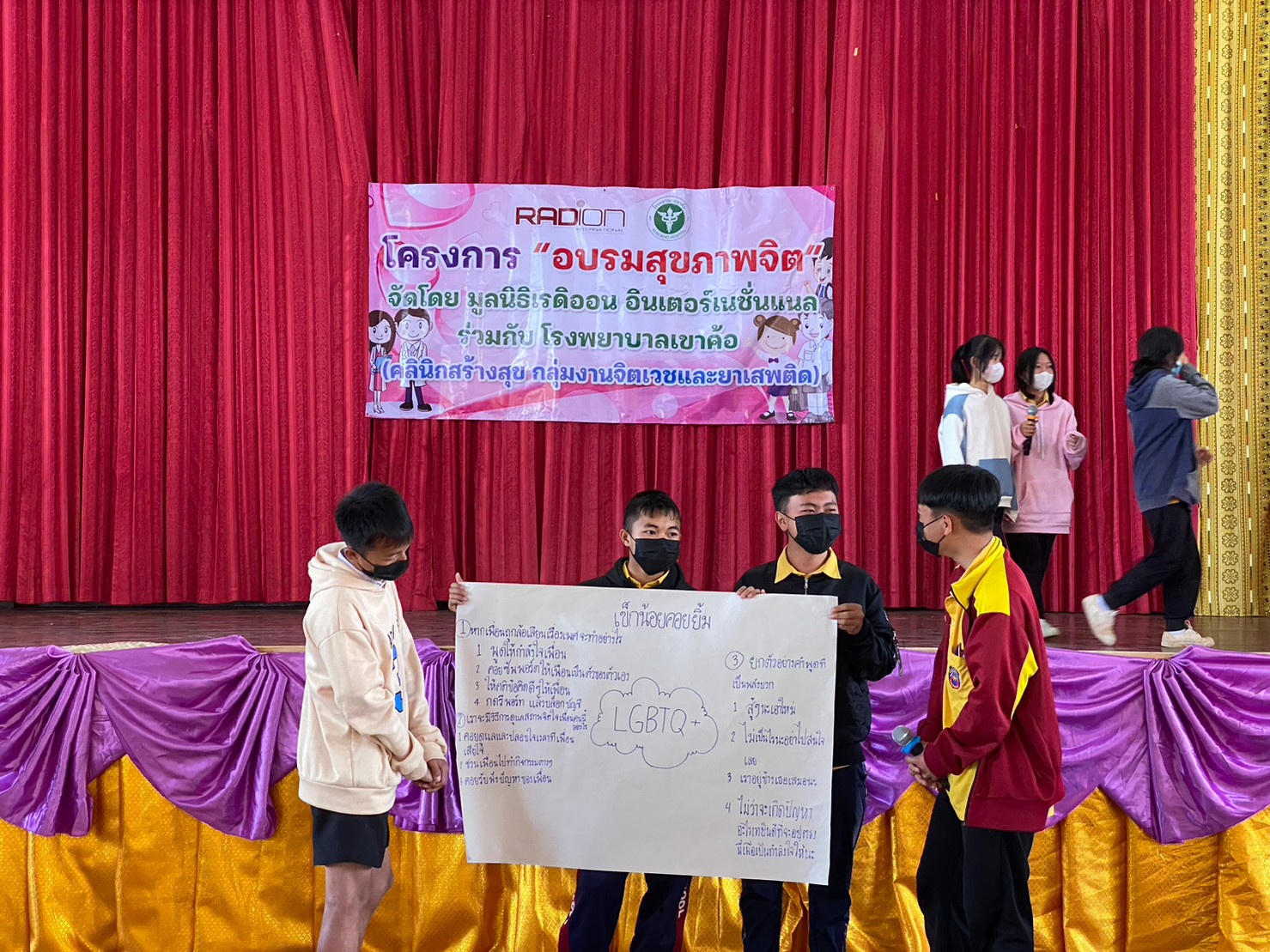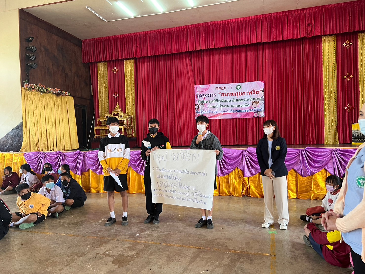มูลนิธิเรดิออนฯ ร่วมกับโรงเรียนเข็กน้อย จัดอบรมอบรมสุขภาพจิตในหัวข้อ “Cyberbully (ไซเบอร์บลูลี่)” โดยมีนักเรียนกว่า 300 คนเข้าร่วม โดยเป็นนักเรียนชั้นมัธยมศึกษาตอนต้นของโรงเรียนเข็กน้อย ซึ่งได้คุณหมอกุ้ง คุณหมอจากโรงพยาบาลเขาค้อ (คลินิกสร้างสุข กลุ่มงานจิตเวชและยาเสพติด) มาเป็นวิทยากรพิเศษที่มาให้ความรู้ในที่ 26 มกราคม 2566 ณ โรงเรียนเข็กน้อย ตำบลเข็กน้อย อำเภอเขาค้อ จังหวัดเพชรบูรณ์
