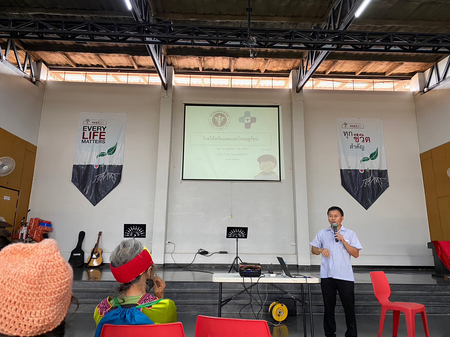 มูลนิธิเรดิออน อินเตอร์เนชั่นแนล จัดอบรมให้ความรู้ในหัวข้อ "ไข้หวัดแดด โรคในหน้าร้อน" ให้กับคนในชุมชนเข็กน้อย จ.เพชรบูรณ์ เมื่อวันที่ 18 มีนาคม 2566 โดยคุณหมอภูชิสส์ วงศาวรินท์ นักวิชาการชำนาญการจาก รพสต.เข็กน้อย เป็นวิทยากรพิเศษวิทยากรพิเศษจาก รพสต.เข็กน้อย