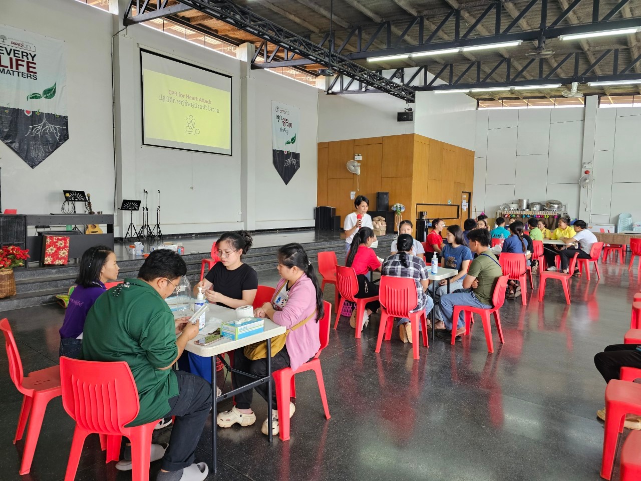 เราจึงเล็งเห็นความสำคัญของการอบรม CPR&IV เพื่อให้บุคคลากร คณะครู รวมถึงทีมงานเรดิออนฯ ของเราด้วยเช่นกัน ได้มีทักษะ ความรู้ ที่สามารถเพิ่มโอกาสรอดชีวิตให้กับใครอีกหลายคนที่ตกอยู่ในภาวะอาการฉุกเฉิน ไม่ว่าจะเป็นหัวใจวาย จมน้ำ หมดสติ สำลักอาหาร หรือการฉีดสายน้ำเกลือเบื้องต้น เพื่อช่วยต่อชีวิตให้กับผู้คนในภาวะฉุกเฉิน