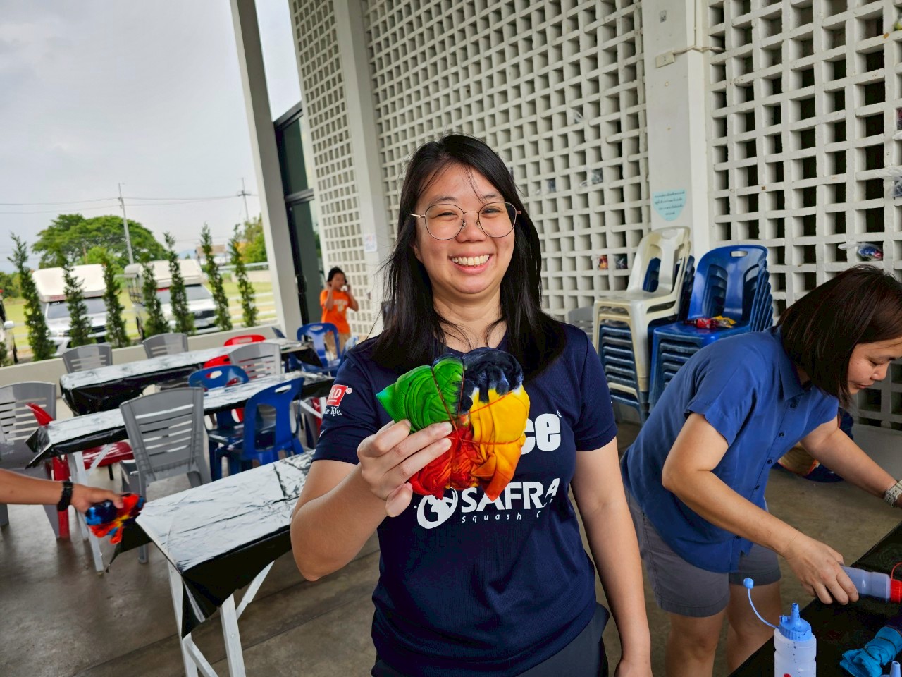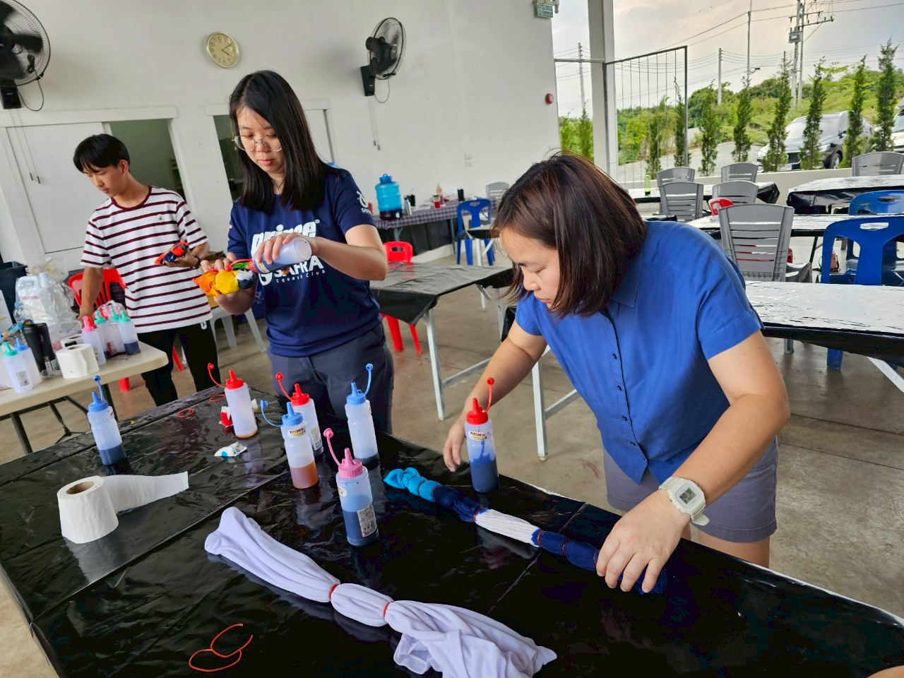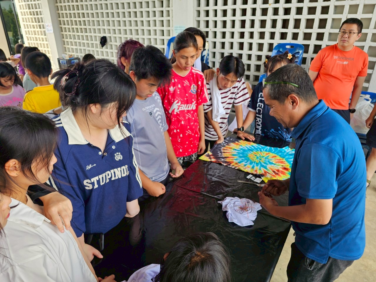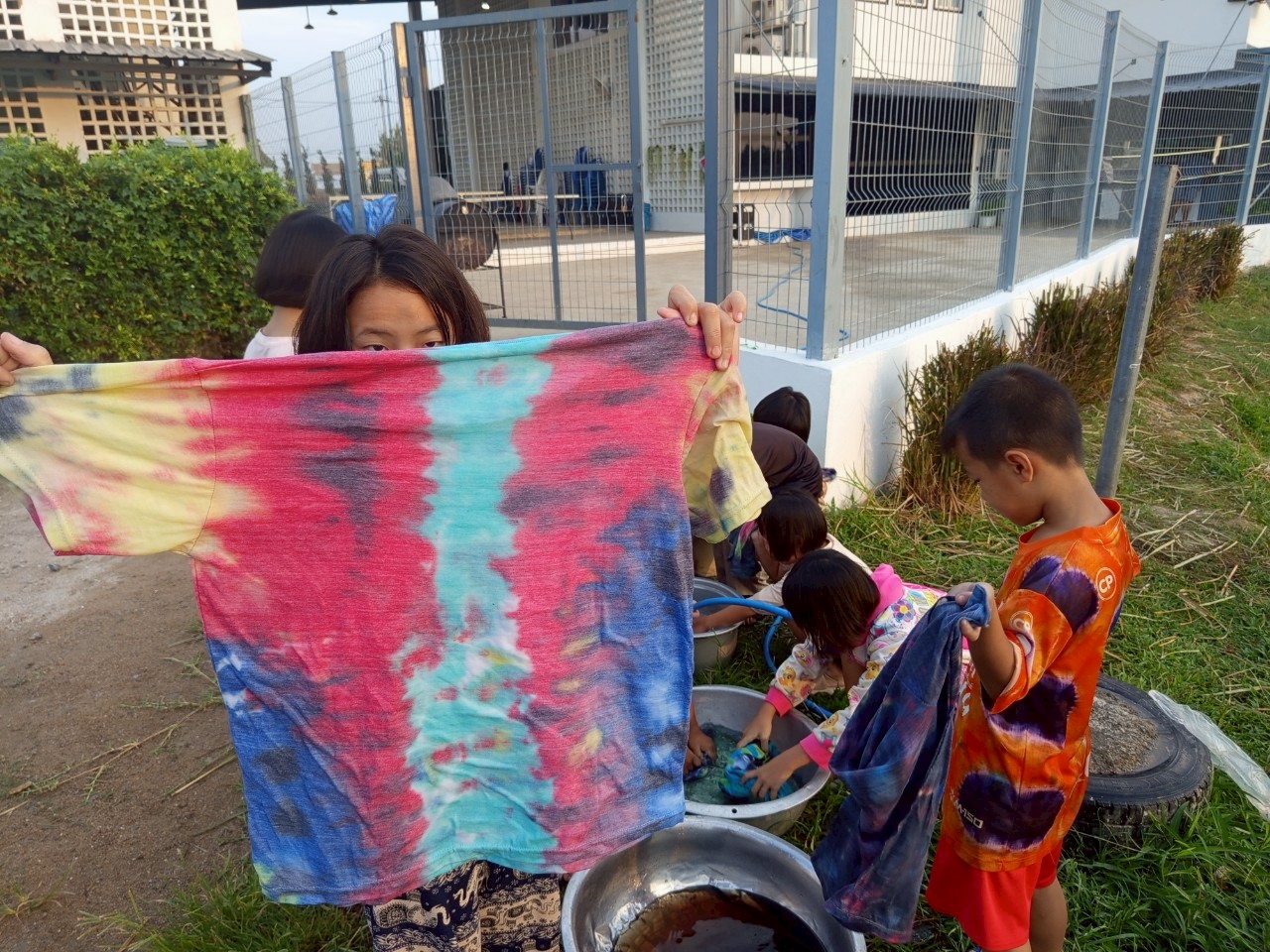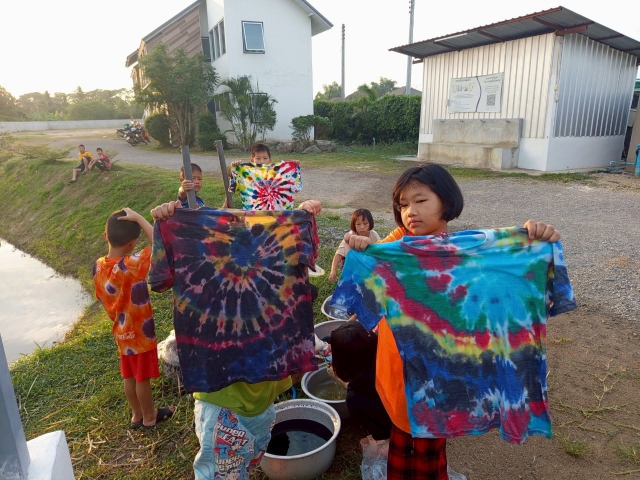 อีกหนึ่งไฮไลต์คือ เวิร์กช็อปผ้ามัดย้อม ที่น้องๆ ได้เปลี่ยนเสื้อขาวตัวเก่า ให้กลายเป็นเสื้อสีสันสดใส ใส่รับสงกรานต์ด้วยความภูมิใจสุดๆ!