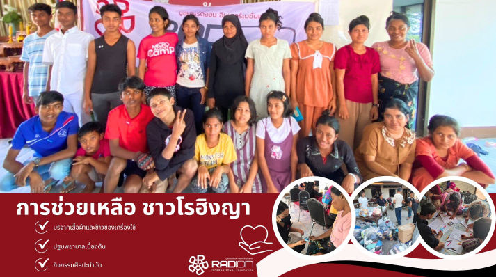 มูลนิธิเรดิออนได้ลงพื้นที่ให้ความช่วยเหลือกลุ่มชาวโรฮิงญาที่ประสบความยากลำบาก ด้วยความห่วงใยและตั้งใจในการฟื้นฟูทั้งร่างกายและจิตใจ ผ่าน 3 กิจกรรมหลัก ได้แก่:
